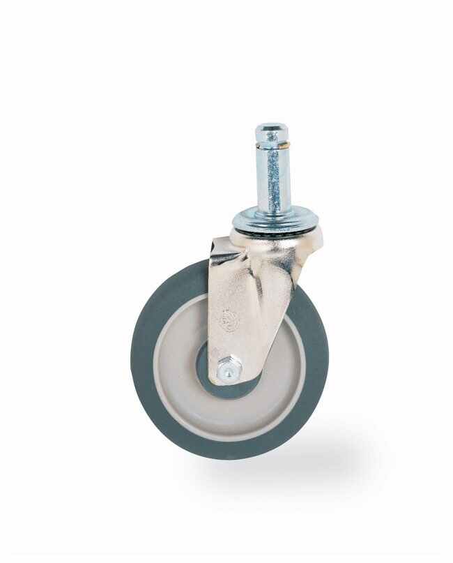 Promotes easy cleaningCasters allow shelving units to be moved easily for access to floors and wallsWhen used to create carts, allows efficient movement of supplies throughout a facility or campusPolymer Stem CastersCorrosion-resistant performance (all-polymer horn, stainless-steel axle and hardware)5 in. (127mm) diameter polyurethane wheelSleeve-stye axle bearingOptional toe-operated brake mechanismAntimicrobial product protection built into treadLoad rating of 300 lbs. (135kg)Temperature range: -20 to 120°F (-29 to 49°C) [continuous]Bumpers includedStandard Stem CastersPlated caster horns and hardwareStem/Swivel or Stem/Brake styleBumpers includedStainless-steel, Cart-Washable Stem CasterStainless horn, axle, and stemSealed bearings (bumper included)