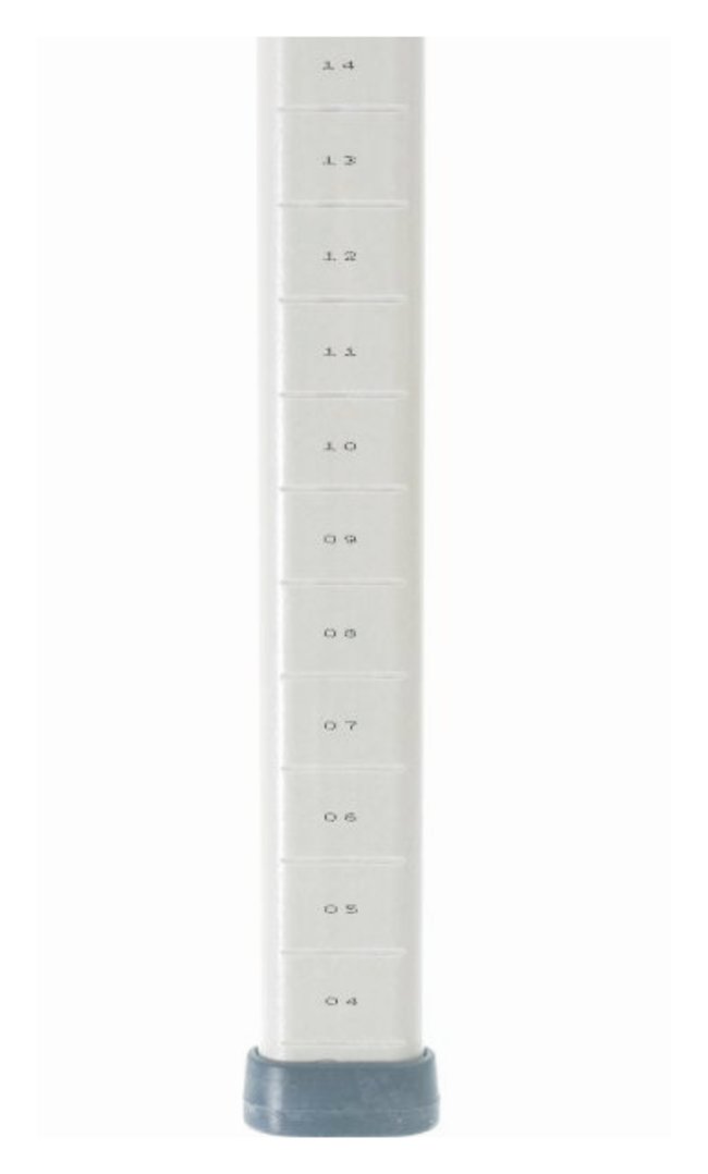 Grooves located every 1 in. for locking shelf wedges in place. Post height stamped to face of post for easy shelf positioning.Corrosion-proof polymer posts with built-in Microban™ antimicrobial product protectionStationary posts include an adjustable leveling foot to compensate for uneven floorsLeveling foot can be adjusted 1 in. (25mm)Mobile posts accept optional Metro Stem Casters, available in a variety of materials to meet your specific need