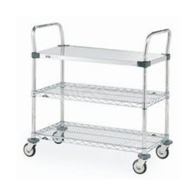 MW Series Utility Cart with Solid and Wire Shelves, Each
