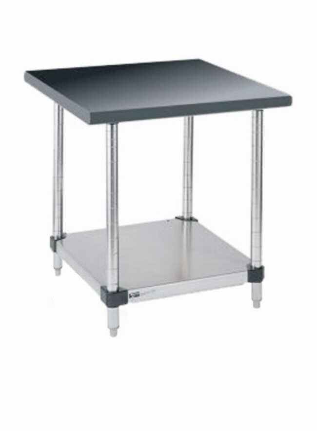 Stainless Lab Worktable, Black Phenolic Top and Solid HD Shelf, Each