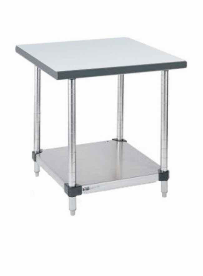 Stainless Lab Worktable, Gray Phenolic Top and Solid HD Shelf, Each