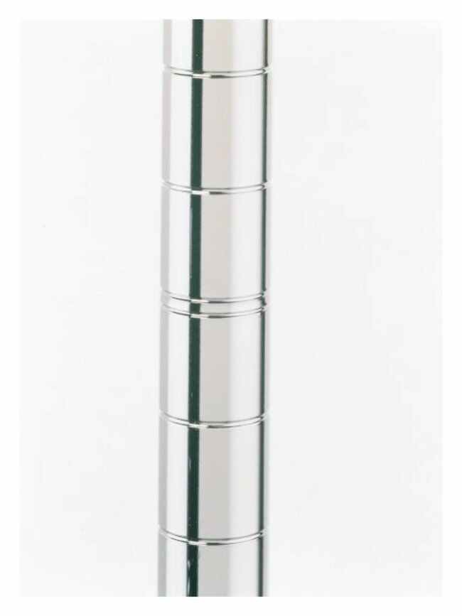 Stationary posts are fitted with adjustable leveling bolts to compensate for uneven surfaces. Posts are available in Chrome, Type 304 Stainless Steel and Metroseal 3. Metroseal 3 includes Microban antimicrobial product protection and has a 12 year warranty against rust and corrosion. Mobile posts come without leveling bolt assembly for use with stem casters.Grooved at 1 in. (2.5cm) intervalsPosts are double-grooved every 8 in. (20.3cm) for easy identificationOrder InfoHeight includes leveling bolt and cap. Shelves and posts sold separately.