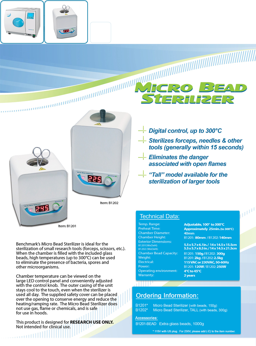Micro Bead Sterlizer, with glass beads, 230V, Each
