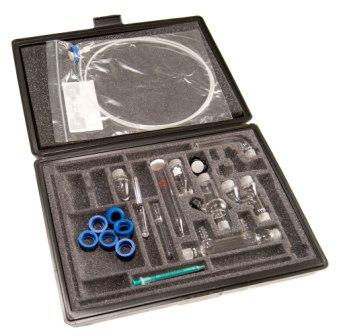 They fit easily into lab bench drawers, Standard Taper 14/10 connections, High temperature-resistant blue nylon connectors, Ideal for use to 200 °C, Manufactured from 33 expansion, low extractable borosilicate glass conforming to USP Type I and ASTM E438, Type I, Class A requirements