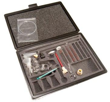 They fit easily into lab bench drawers, These MICROFLEX® Kits feature patented chaste connectors and specially tooled glassware components, providing great versatility, Glassware is manufactured from 33 expansion, low extractable borosilicate glass conforming to USP Type I and ASTM E438, Type I, Class A requirements