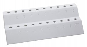 Racks allow storage of 20 micro test tubes and are available in two models, one for 1.5 ml tubes and one for 0.5 ml tubes. Top step is numbered from 1 to 10, lower step is numbered from 11 to 20. Made of autoclavable polypropylene.