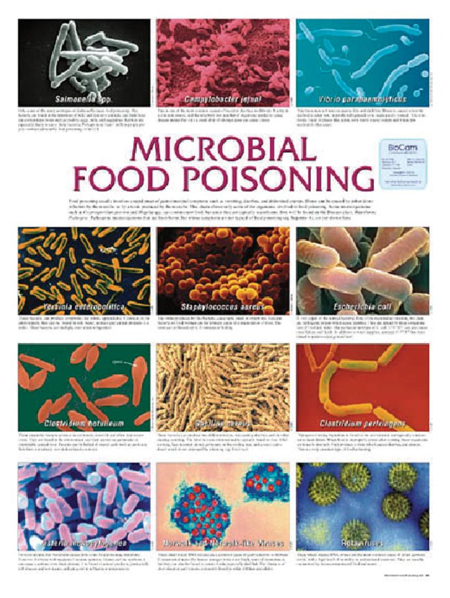 Beautifully illustrated wall charts introduce students to the microscopic world of waterborne pathogens and pathogens that cause microbial food poisoning. Short s highlight the disease symptoms and occurrence and transmission of the pathogens. Charts are laminated for durability.Order InfoDimensions: 18 × 24 in. (45.7 × 70cm)