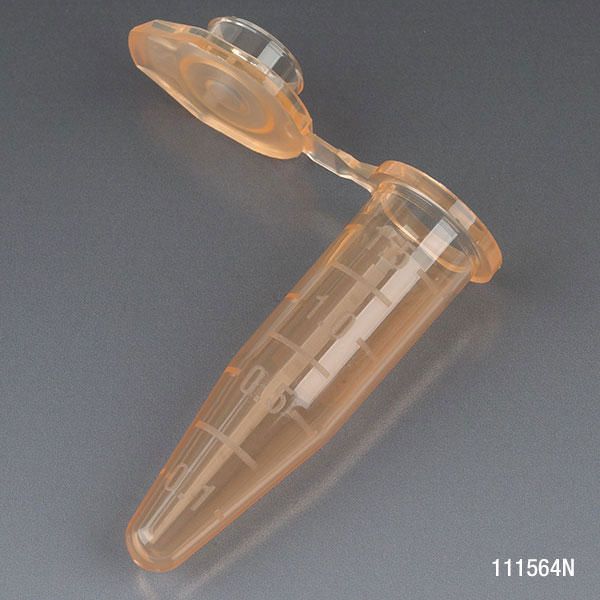 Microcentrifuge Tube Orange 1.5ml^ Microcentrifuge Tube, Graduated, Material: Polypropylene, with attached Snap Cap, Colour: Orange, Certified: Rnase, Dnase and Pryogen Free, Withstand temperatures from -80 deg C to 121 deg C, Thin cap membrane for trouble-free needle piercing, Volume: 1.5ml