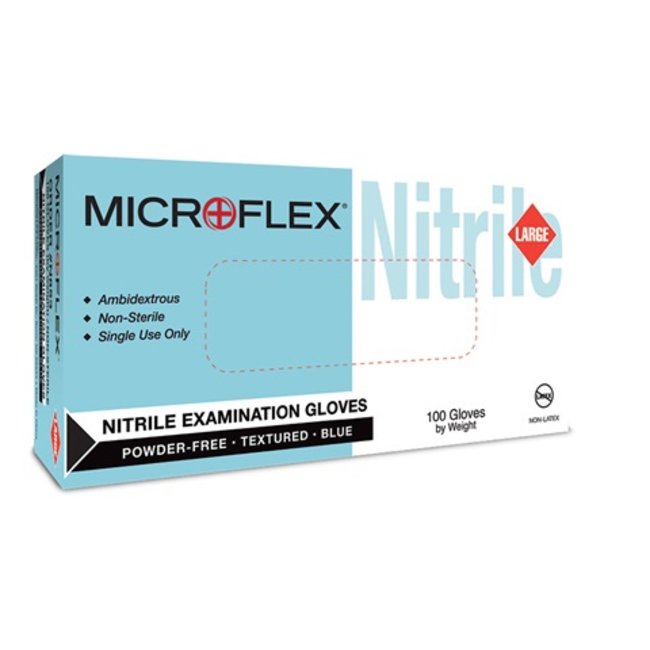 MICROFLEX N85 Nitrile Gloves, Fully textured, powder free nitrile glove provides greater comfort and a reliable secure grip, Pack of 100