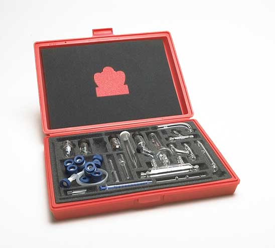 packed in a rugged polyethylene storage case (2 1/2” H x 13 1/2” W x 10” D) with a die-cut foam insert, High-temperature-resistant blue nylon connectors, Ideal for use to 200 °C, Glassware is manufactured from 33 expansion, low extractable borosilicate glass conforming to USP Type I and ASTM E438, Type I, Class A requirements