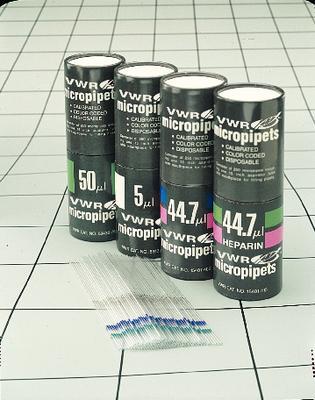 Borosilicate glass micropipettes are made to exacting specifications and are calibrated to contain with permanent fill lines., The 44.7 µl size is treated with the anticoagulant heparin for clinical applications., 04_BodyText: Each canister is marked with bold size designations for quick identification in the laboratory., 02_BulletPoint: Color-coded | Borosilicate glass fabrication | Sizes from 5 to 100 µl | Permanent fill lines, 10_Ordering: This item is packed in easy dispensing canisters of 250 micropipettes and one 38.1 cm (15") aspirator tube., Capacity: 44.7 µl (Heparin), Color: Purple and Green, Cat. No.: 15401-413, Borosilicate glass micropipettes are made to exacting specifications and are calibrated to contain with permanent fill lines., The 44.7 µl size is treated with the anticoagulant heparin for clinical applications., 04_BodyText: Each canister is marked with bold size designations for quick identification in the laboratory., 02_BulletPoint: Color-coded | Borosilicate glass fabrication | Sizes from 5 to 100 µl | Permanent fill lines, 10_Ordering: This item is packed in easy dispensing canisters of 250 micropipettes and one 38.1 cm (15") aspirator tube., Capacity: 75 µl, Color: Purple, Cat. No.: 53432-808, Borosilicate glass micropipettes are made to exacting specifications and are calibrated to contain with permanent fill lines., The 44.7 µl size is treated with the anticoagulant heparin for clinical applications., 04_BodyText: Each canister is marked with bold size designations for quick identification in the laboratory., 02_BulletPoint: Color-coded | Borosilicate glass fabrication | Sizes from 5 to 100 µl | Permanent fill lines, 10_Ordering: This item is packed in easy dispensing canisters of 250 micropipettes and one 38.1 cm (15") aspirator tube., Capacity: 50 µl, Color: Green, Cat. No.: 53432-783, Borosilicate glass micropipettes are made to exacting specifications and are calibrated to contain with permanent fill lines., The 44.7 µl size is treated with the anticoagulant heparin for clinical applications., 04_BodyText: Each canister is marked with bold size designations for quick identification in the laboratory., 02_BulletPoint: Color-coded | Borosilicate glass fabrication | Sizes from 5 to 100 µl | Permanent fill lines, 10_Ordering: This item is packed in easy dispensing canisters of 250 micropipettes and one 38.1 cm (15") aspirator tube., Capacity: 25 µl, Color: 2-White, Cat. No.: 53432-761, Borosilicate glass micropipettes are made to exacting specifications and are calibrated to contain with permanent fill lines., The 44.7 µl size is treated with the anticoagulant heparin for clinical applications., 04_BodyText: Each canister is marked with bold size designations for quick identification in the laboratory., 02_BulletPoint: Color-coded | Borosilicate glass fabrication | Sizes from 5 to 100 µl | Permanent fill lines, 10_Ordering: This item is packed in easy dispensing canisters of 250 micropipettes and one 38.1 cm (15") aspirator tube., Capacity: 20 µl, Color: Black, Cat. No.: 53432-740, Borosilicate glass micropipettes are made to exacting specifications and are calibrated to contain with permanent fill lines., The 44.7 µl size is treated with the anticoagulant heparin for clinical applications., 04_BodyText: Each canister is marked with bold size designations for quick identification in the laboratory., 02_BulletPoint: Color-coded | Borosilicate glass fabrication | Sizes from 5 to 100 µl | Permanent fill lines, 10_Ordering: This item is packed in easy dispensing canisters of 250 micropipettes and one 38.1 cm (15") aspirator tube., GSA Contract: Y, Capacity: 10 µl, Color: Orange, Cat. No.: 53432-728, Borosilicate glass micropipettes are made to exacting specifications and are calibrated to contain with permanent fill lines., The 44.7 µl size is treated with the anticoagulant heparin for clinical applications., 04_BodyText: Each canister is marked with bold size designations for quick identification in the laboratory., 02_BulletPoint: Color-coded | Borosilicate glass fabrication | Sizes from 5 to 100 µl | Permanent fill lines, 10_Ordering: This item is packed in easy dispensing canisters of 250 micropipettes and one 38.1 cm (15") aspirator tube., GSA Contract: Y, Capacity: 5 µl, Color: White, Cat. No.: 53432-706, Borosilicate glass micropipettes are made to exacting specifications and are calibrated to contain with permanent fill lines., The 44.7 µl size is treated with the anticoagulant heparin for clinical applications., 04_BodyText: Each canister is marked with bold size designations for quick identification in the laboratory., 02_BulletPoint: Color-coded | Borosilicate glass fabrication | Sizes from 5 to 100 µl | Permanent fill lines, 10_Ordering: This item is packed in easy dispensing canisters of 250 micropipettes and one 38.1 cm (15") aspirator tube., Borosilicate glass micropipettes are made to exacting specifications and are calibrated to contain with permanent fill lines., The 44.7 µl size is treated with the anticoagulant heparin for clinical applications., 04_BodyText: Each canister is marked with bold size designations for quick identification in the laboratory., 02_BulletPoint: Color-coded | Borosilicate glass fabrication | Sizes from 5 to 100 µl | Permanent fill lines, 10_Ordering: This item is packed in easy dispensing canisters of 250 micropipettes and one 38.1 cm (15") aspirator tube., Capacity: 44.7 µl, Color: Purple and Blue, Cat. No.: 15401-402, Borosilicate glass micropipettes are made to exacting specifications and are calibrated to contain with permanent fill lines., The 44.7 µl size is treated with the anticoagulant heparin for clinical applications., 04_BodyText: Each canister is marked with bold size designations for quick identification in the laboratory., 02_BulletPoint: Color-coded | Borosilicate glass fabrication | Sizes from 5 to 100 µl | Permanent fill lines, 10_Ordering: This item is packed in easy dispe