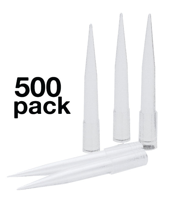 Pack of 500 non-sterile, autoclavable micropipette tips. Free of lubricants, dyes and heavy metals. 200 - 1,000 µl capacity. Each micropipette tip measures 2.75" long