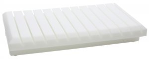 New improved flat design, this microscope slide block holds ninety one 1” x 3” slides (75-25mm). Block is chemically resistant, easy to clean and perfect for drying slides during evacuation and/or cleaning. Angled slots tip slides back for convenient viewing.