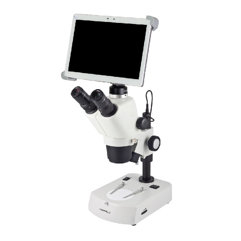 Magnification: 0.75 - 4.5×, Basic stereo microscope for education work in university and high school, also suitable for transparent samples. The implemented click-stops allow precise reproduction of magnification. Students and lab technician benefit from the package solution with integrated transmitted/incident LED illumination, ready to start., Affordability and precision are beautifully combined in VWR's new Routine Stereo Zoom Microscope. This all-rounder, has been designed to be a versatile and durable optical instrument for everyday use in education, industry, and the life sciences., 04_BodyText: Connection: Wi-Fi (2.4 and 5 GHz), Ethernet | WiFi Resolution: 4 MP (2592×1520 pixels) captured resolution | Photo/video: 50/50 fixed | WiFi: WiFi output (802.1 a/b/g/n/ac supporting both hot-spot mode or using existing WiFi network) | Power supply: 100 to 240 V (cUL), 02_BulletPoint: Greenough zoom stereo microscope optical system | 45° Trinocular stereomicroscope head | Widefield eyepieces 10×/F.N. 20 | R2LED: Compact incident/transmitted illumination stand | 3 W Intensity controlled LED incident and transmitted illumination | Camera adapter 0.5× | Moticam BTI10 camera | 10" LCD Android tablet with 1280×800 screen resolution | Preloaded optimized app, Routine stereo zoom LED trinocular with 10" tablet camera bundle, Working Distance: 100 mm, Zoom Lens: 6:1, Cat. No.: 77676-474, Basic stereo microscope for education work in university and high school, also suitable for transparent samples. The implemented click-stops allow precise reproduction of magnification. Students and lab technician benefit from the package solution with integrated transmitted/incident LED illumination, ready to start., Affordability and precision are beautifully combined in VWR's new Routine Stereo Zoom Microscope. This all-rounder, has been designed to be a versatile and durable optical instrument for everyday use in education, industry, and the life sciences., 04_BodyText: Connection: Wi-Fi (2.4 and 5 GHz), Ethernet | WiFi Resolution: 4 MP (2592×1520 pixels) captured resolution | Photo/video: 50/50 fixed | WiFi: WiFi output (802.1 a/b/g/n/ac supporting both hot-spot mode or using existing WiFi network) | Power supply: 100 to 240 V (cUL), 02_BulletPoint: Greenough zoom stereo microscope optical system | 45° Trinocular stereomicroscope head | Widefield eyepieces 10×/F.N. 20 | R2LED: Compact incident/transmitted illumination stand | 3 W Intensity controlled LED incident and transmitted illumination | Camera adapter 0.5× | Moticam BTI10 camera | 10" LCD Android tablet with 1280×800 screen resolution | Preloaded optimized a