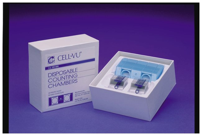 Cytometers, Sperm Count; CELL-VU; For undiluted specimens; Disposable; 3 x 1 in. glass slide and coverslip w/counting grid etched on surface; Slide has 2 chambers for dual determinations; 25 slides and 50 cover slips/box