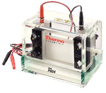 Penguin* Vertical Electrophoresis System^ Complete system. 10Wx10Lcm gel size. Central cooling chamber. High resolution results. 3 electrode configuration for improved field uniformity. 4 blank, 2 notched glass plates; 2 notched alumina plates, 2 spacer sets, 2 combs. 250mL buffer capacity. 500V.