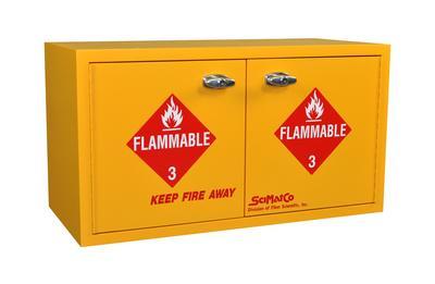 Mini Stak-a-Cab* Safety Storage Units^ 36.8Lx78.7Wx43.2Hcm (14 1/2 x31x17"). 2.54cm (1") thick plywood, epoxy finish. Stacking/ stand-alone. Safe chemicals organization. Easy ID by color and label. Locking mechanism. Meets NFPA /OSHA standards. Flammables Cabinet, 8 x 3.8L Capacity, Color Yellow.