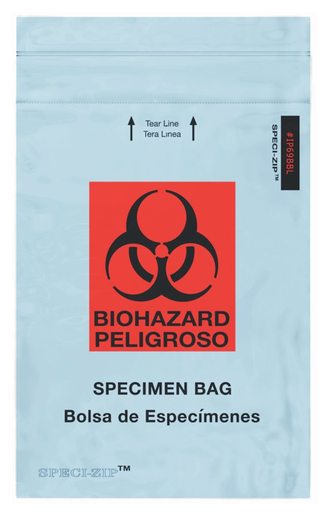 SPECI-ZIP Reclosable Colored Biohazard Bags, Designed with info pocket (three wall) and tear line, Case of 1000