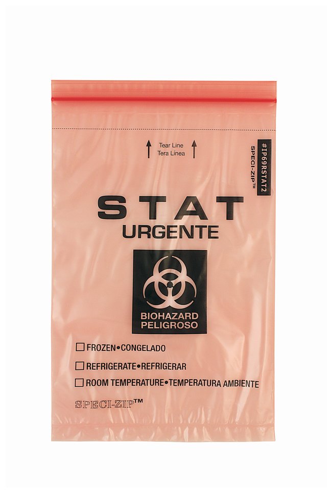 SPECI-ZIP Reclosable Red Biohazard Bags, With black STAT and biohazard warning, Case of 1000