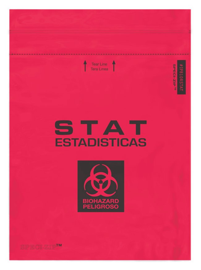 SPECI-ZIP Reclosable Red Biohazard Bags, With black STAT and biohazard warning, Case of 1000