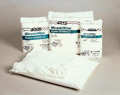 MiracleWipe* Cleanroom Wipers^ For spill control and wiping in ISO Class 5 environments. Soft, continuous filament nylon fiber with double-knit, no-run interlock construction. Low in particle generation. ISO Class 5 cleanroom washed. Packaged in Solvent-safe Bag-Within-A-Bag* packaging. 23x23cm.
