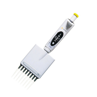 mLINE* 8-Channel Mechanical Pipettor, 10uL^ Volume: 0.5-10uL. Increment: 0.01uL. Full autoclavability. Lightweight, ergonomic. Locking mechanism prevents accidental volume changes during pipetting. Rotating Dispensing Head.