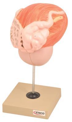 Model Human Urinary Bladder with Prostate-2 Parts^ Enlarged 3x, shows the male urinary bladder with the prostate gland surrounding the urethra. The model is dissected medially to expose both inteRNAl and exteRNAl structures of the bladder and prostate