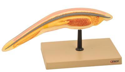 Model Amphioxus^ Enlarged 150 times, showing features of chordates.