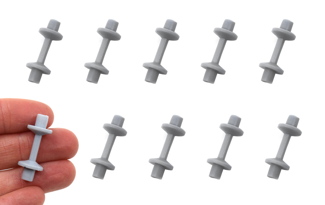 Set of ten, molecular flex bonds. Gray in color. Each bond measures 3cm (1.2") long. Attachment ends measure 0.5cm (0.2") in diameter. For use as spare or extra parts in molecular model kits.