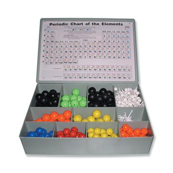 An updated version of our popular atomic model sets that are suitable for constructing complex organic and inorganic molecules. The teacher set contains 100 atom centers and 86 bonds. The student set has 48 atom centers and 35 bonds. Both sets come in durable plastic storage boxes with a copy of the periodic table for easy reference.Sets can be used to model different organic and inorganic compounds. Classroom Set includes 150 connecting lugs and 370 colored balls, and a molded storage box with compartments. The Student Set includes 30 connecting lugs and 75 balls. Both sets include a periodic Table of the element