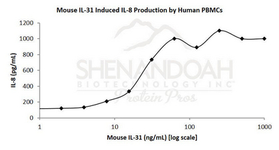 Recombinant Mouse Interleukin-31 (Il-31)^ Recombinant Mouse Interleukin-31 (Il-31) Is An Immunoregulatory Cytokine Expressed By Activated Th2 Cells, Contains 141 Aas, Mw: 15.7 Kda, Activity: Dose Dependent Production Of Il-8 From Human Pbmcs & Is Typically Less Than 25 Ng/Ml, Source: E.Coli, 10Ug