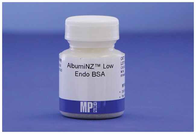 Chromatographically purified for culturing embryonic, mesenchymal and hematopoietic cells. Lipid-rich formulation can be substituted for Albumax™ II.Physical characteristics:Form: Off white to brown powderPurity:≥98% (w/w)Total Protein: ≥96%pH (4%): 6.5 to 7.5Solubility: Dissolves in 20 minutes at 20° to 25°CMoisture: ≤5% w/wMicrobial evaluation and control:Endotoxin: ≤1EU/mgMycoplasma: NegativeBioburden: ≤100cfu/gVirus (9CFR): NegativeReported: Lipid content Certifications: ISO9001, ISO13485, cGMP, EDQM