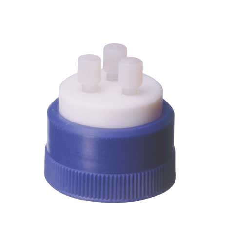 Caps have ¼”-28 threads top and bottom with 1/8” ID holes to accept 1/8” OD PTFE tubing, Body is PTFE, Supplied complete with three ¼”-28 CTFE plugs and a TFE/propylene o-ring