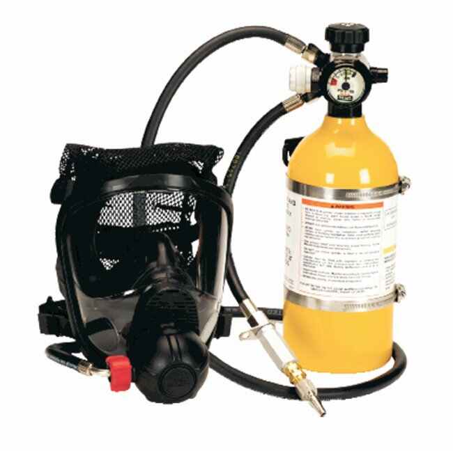 Low-profile escape cylinder can be worn on either hip for user comfortSmall size is less likely to snag when working in tight spacesTwo attachments for keeping cylinder secure on beltShoulder support strap incorporates hose keeper; regulator hose stays in place close to bodyBracket/holder of second stage pressure regulatorNylon strap harness/carrierCertificationsNIOSH approved as open-circuit, pressure-demand escape SCBA, open-circuit, pressure-demand escape SCBA and Type C supplied-air respiratorComplianceNIOSH approved as open circuit; pressure-demand escape SCBA; open-circuit, pressure-demand escape SCBA; and Type C supplied-air respirator.