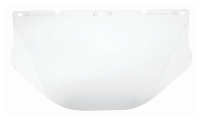 Polycarbonate visor protect against impact, chemical splash and UltraViolet radiationSides contoured towards face for closer fit and improved resistance to impact and splash hazardsCan be worn with helmet-mounted ear muffs High UV protectionAvailable with Antifog/Antiscratch coatingsL x W x H: 20.3 x 43.1 x 0.10cm (8 x 17 x 0.04 in.)Applications:Sanding and Grinding, Food Processes, Painting, Asbestos Abatement