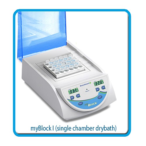 The myBlock's transparent lid helps to promote better uniformity and minimize temperature stratification in the block by maintaining a warm air jacket layer. It also helps to reduce energy consumption by minimizing heat loss to the environment. The hinged lid can be flipped open (to the rear), or easily removed (lifted off) to accommodate taller tubes. Both the single and dual block models can be ordered in a configuration that includes Benchmark's unique Quick-Flip blocks. These universal blocks accept tubes from 0.5 to 2.0ml and, with just a quick flip to the other side, accommodates 0.2ml tubes, PCR strips or (in the dual block model only) a PCR plate. Other blocks are available for tubes up to 50ml.