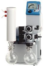 Pump, Vacuum, VACUUBRAND MZ2C NT^ Synchro dry diaphragm pump with solvent recovery and flow control, 230V BrandTech. Fluoropolymer construction to run two independent applications. 38 liter per minute (1.4 cfm) flowrate, 7 millibar (5 torr) ultimate vacuum. 10mm (3/8in) inlet