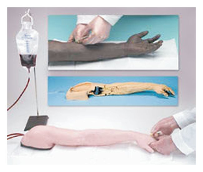 A revolutionary training arm providing complete venous access for IV therapy and phlebotomy, as well as sites for intramuscular and intradermal injections.