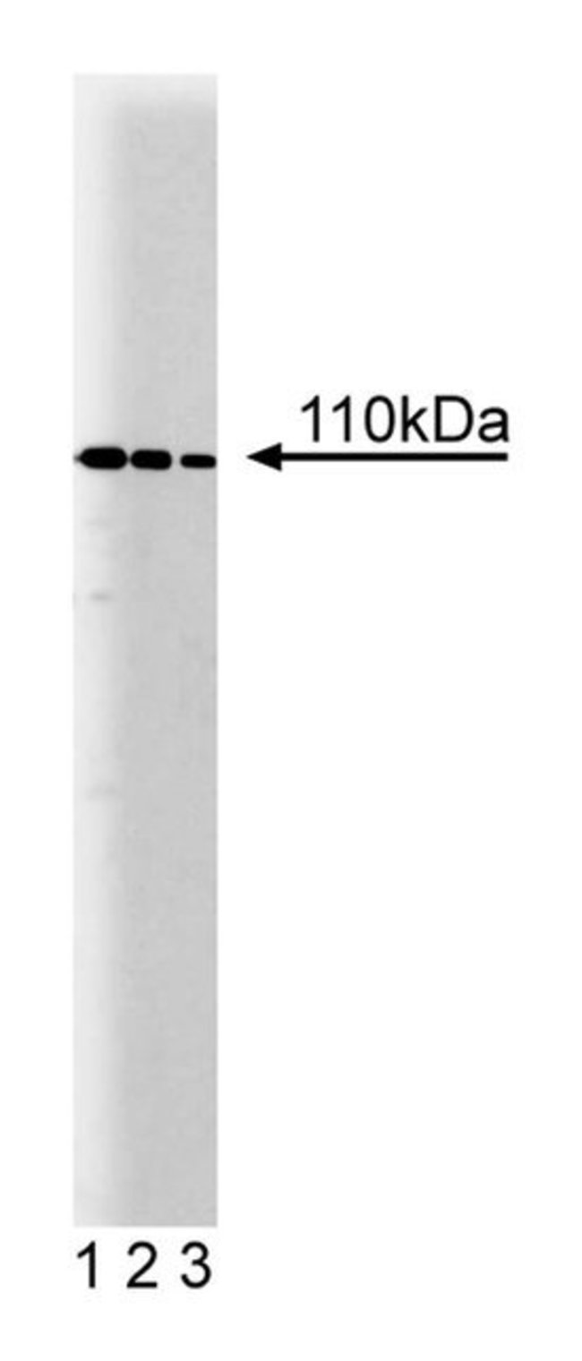 Regulated protein degradation involves conjugation of ubiquitin to proteins for degradation by the 26S proteasome. Protein ubiquitination is the end product of a multienzyme cascade that involves sequential thiol-ester bond interactions between ubiquitin and enzymes termed E1-E3. Neuronal precursor cell-expressed developmentally down-regulated 4 (Nedd4) is a multimodular ubiquitin protein ligase E3 that contains a Ca2+;-lipid binding domain (CaLB), 3 WW domains, and a C-terminal ubiquitin protein ligase hect domain. The CaLB is characteristic of C2 domain-containing proteins, such as PKC, phospholipase C, phospholipase A2, and synaptogamin. Nedd4 is expressed differentially in the fetal and adult brain and its highest expression is in lung and kidney. Although it localizes in the cytoplasm, increased intracellular Ca 2+ induces plasma membrane association of Nedd4. In addition, increases in intracellular Na+ leads to Nedd4 binding to epithelial Na+ channels via its WW domains, which results in targeting of Na+ channels for degradation. Thus, the subcellular localization and protein interactions of Nedd4 are regulated in a Ca2+;- and Na+-dependent manner.Host Species: MouseClone: 15Isotype: IgG1Species Reactivity: MouseImmunogen: Mouse Nedd4 aa. 173-262Formula Weight [Chemical]: 110kDaImmunofluorescence, Western Blotting