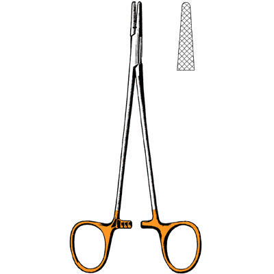 Crile-Wood* Needle Holder^ 6 inch, Serrated Jaws, Tungsten Carbide Insert on Jaws, Mid Grade Stainless Steel