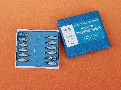 Perfectum* Non-Sterile Hypodermic Needle^ For intramuscular, subcutaneous and other injections. Adheres to U.S. Government specification GG-N-196. Hubs are brass chrome plated to comply with Luer Taper Specification 70.1 of the American Standards Association. Needle length: 25.4mm. 21 gauge.