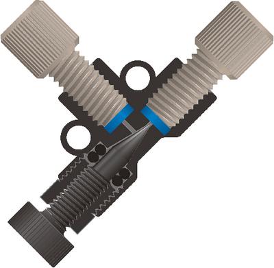 Valve, Micro-Metering^ With 2 one-piece fingertight fittings, for 1/16 inch OD tubing, 10-32 threads, PEEK*, black