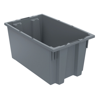 Nest and Stack Tote 5.69 gallon^ Nest and Stack Tote, Color: Grey, Material: Plastic, Features: Ideal solution for storage, transfer, Strong, high-density, NSTs are ideal for storage, longer service life resulting in lower replacement costs, Dimension: 18 X 11X 9 in, Size: 5.69 gallon