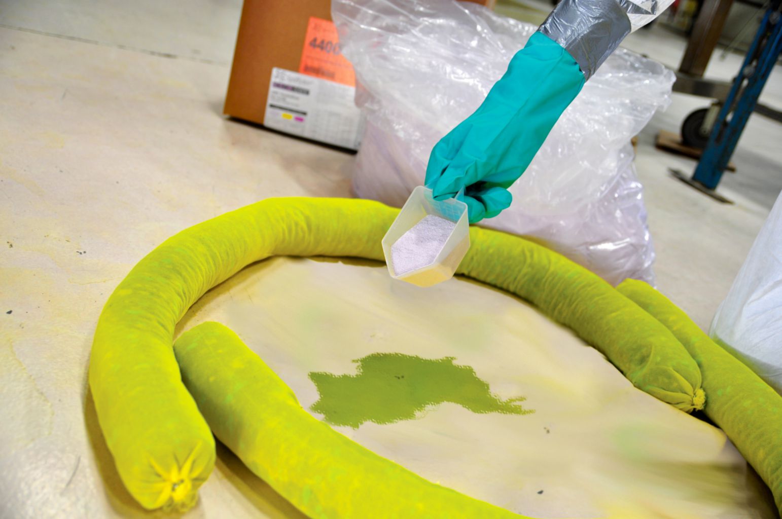 Spilfyter* KOLOR-SAFE* Neutralizer^ #10 bulk dry neutralizer for minimizing risks associated with acids. For containment of acid spills.