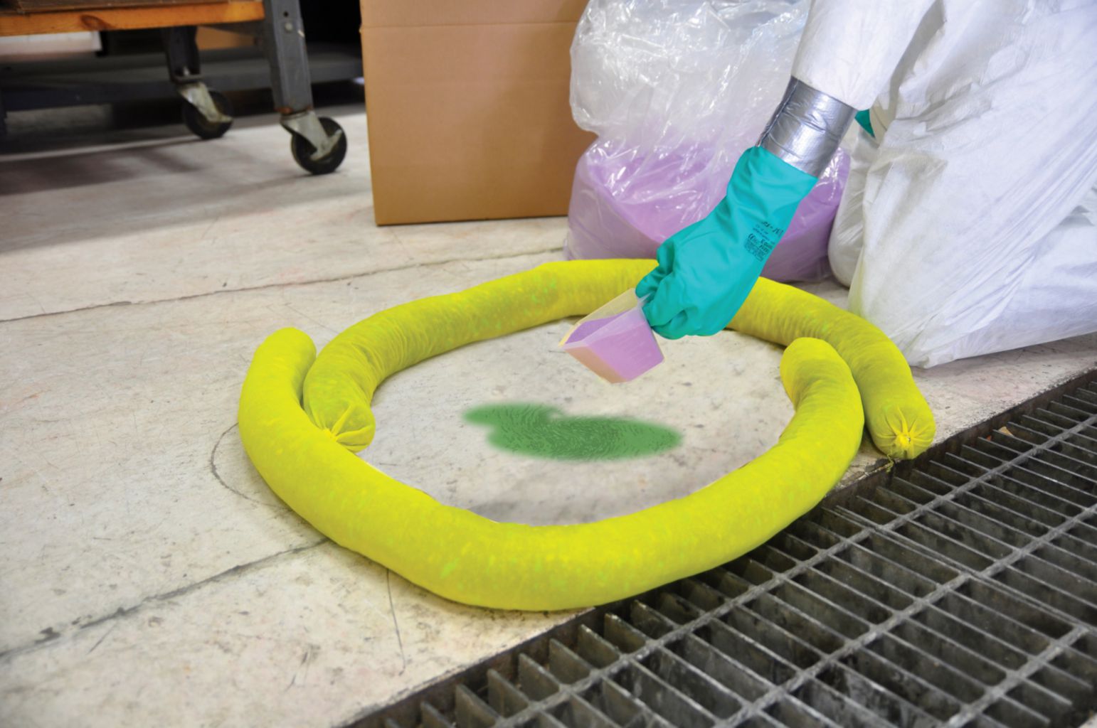 Spilfyter* KOLOR-SAFE* Neutralizer^ #10 bulk dry neutralizer for minimizing risks associated with bases. For containment of base spills.