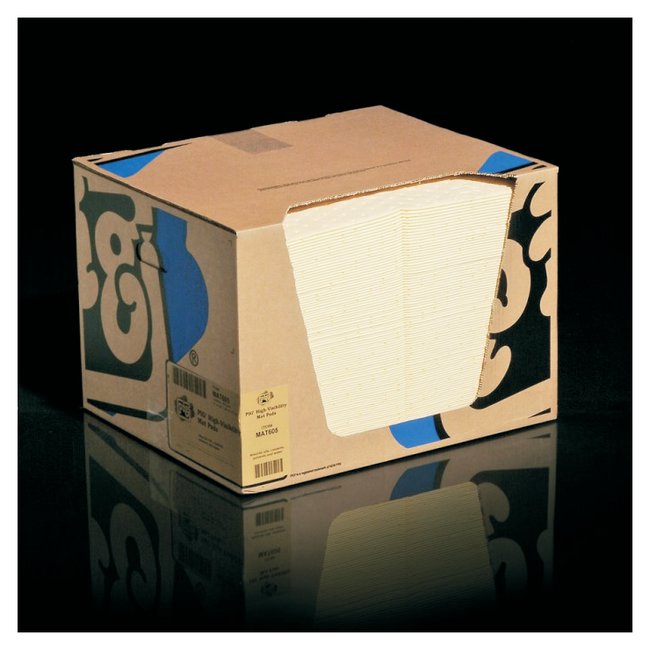Heavyweight mat pads are ideal for soaking up big spills and heavy leaks around machines and equipment; dispenser box fits neatly on shelves or cartsBright yellow color stands out so it's easy for workers to see hazards, repairs or cleanups in progress, even in poorly lit areas.PIG Mat lasts 2 times longer than competitive mats and won't rip, tear or fray even when saturated; liquids absorb quickly for faster, easier cleanups and safer workplacesAbsorbs most common industrial liquids - oils, coolants, solvents, water and more