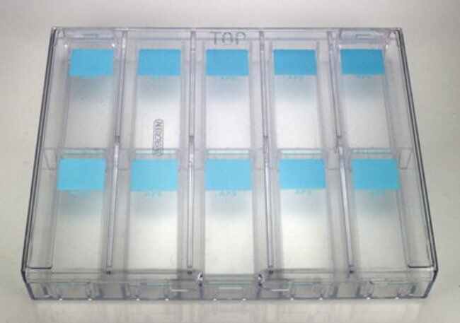 Slide Moisture Chamber, Clear. 10 slide chamber for keeping your slides well separated, maintaining moisture, and watching the reaction. Stackable, heavy duty plastic construction, Each