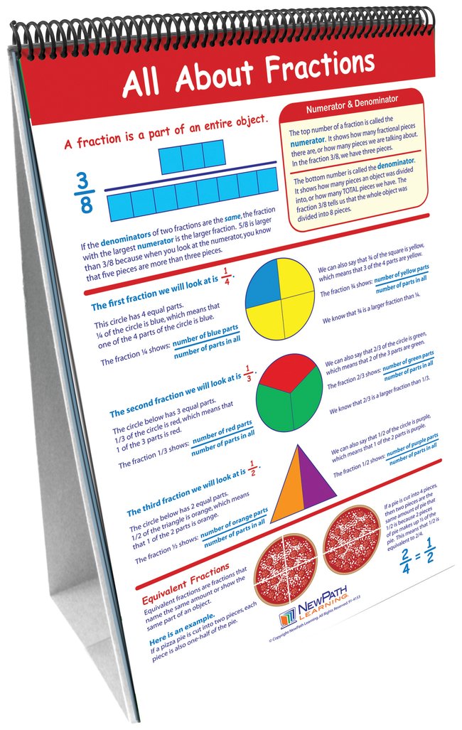 Curriculum Mastery Flip Charts provide a hands-on review of standards-based curriculum skills. Each developed to address the standards for its specific grade.10 Double-sided, laminated chartsSide 1 shows a colorful, graphic overview of the topicSide 2 serves as a write-on/wipe-off activity chart featuring questions, labeling exercises, vocabulary review and moreCharts are mounted on sturdy easels for years of useChart Dimensions (L x W): 18 x 12 in. (45.7 x 30.5cm)Topics include:Grade 1 (S93931): Numbers; Plane Shapes; Solid Figures; Time; Addition; Subtraction; Money; Fractions; Calendar; and MeasuringGrade 2 (S93932): Addition Facts (two-digit); Subtraction Facts (two-digit); Hundred Counting Chart; Place Value to 100; Fractions; Telling Time; Length, Capacity, Weight, and Temperature; Data and Graphs; Ordinals; and SymmetryGrade 3 (S93933): Adding and Subtracting Three-Digit Numbers; Multiplication Concepts and Facts; Multiplication Table; Division Concepts and Facts; Counting Money; Addition and Subtraction Number Sense; All About Fractions; Decimals; Geometry and Measurement; and Problem-Solving StrategyGrade 4 (S93934): Place Value; Multiplying; Dividing; Adding and Subtracting Decimals; Polygons; Lines and Angles; Area, Volume, and Perimeter; Number Line; Adding and Subtracting Fractions; and Customary Units of MeasurementGrade 5 (S93935): Data and Graphs; Multiplying and Dividing; Adding and Subtracting Fractions; Multiplying and Dividing Fractions; Understanding Percents; Order of Operations; Algebra; Probability; Congruent Shapes; and AnglesGrade 6 (S93936): Commutative and Associative Properties; Decimal Operations; Graphing Ordered Pairs; Integers and Rational Numbers; Adding and Subtracting Integers; Multiplying and Dividing Integers; Writing Expressions; Solving Equations; Area of Triangles; and Area and Circumference of Circle