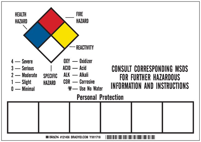 NFPA Hazardous Chemical Label, Pack of 5
