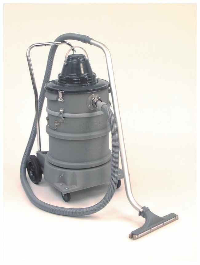 Four-stage filtration system designed for liquid or dry pick-up, with no filter change or adjustmentPliable rubber inlet tube is designed to relieve caking and clogging caused by the collection of damp or sticky materialDetachable trolley features sturdy polyethylene construction and large, smooth wheels for easy decontamination and added maneuverabilityThe foam impact filter fits over and protects the float valve from clogging debrisOrder InfoMeasures 37.5H × 24L × 21.5W in. (95.2 × 61 × 54.6cm). With accessories, weighs 65 lb. (29.5kg).